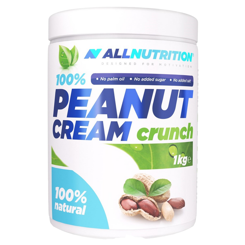 Allnutrition 100% Peanut Cream, Crunch - 1000g is a premium natural nut spread derived from environmentally friendly peanut crops. This delicious peanut cream sets itself apart with its commitment to quality—free from added sugars and unnecessary additives, ensuring you’re indulging in nothing but wholesome, nutrient-rich goodness.