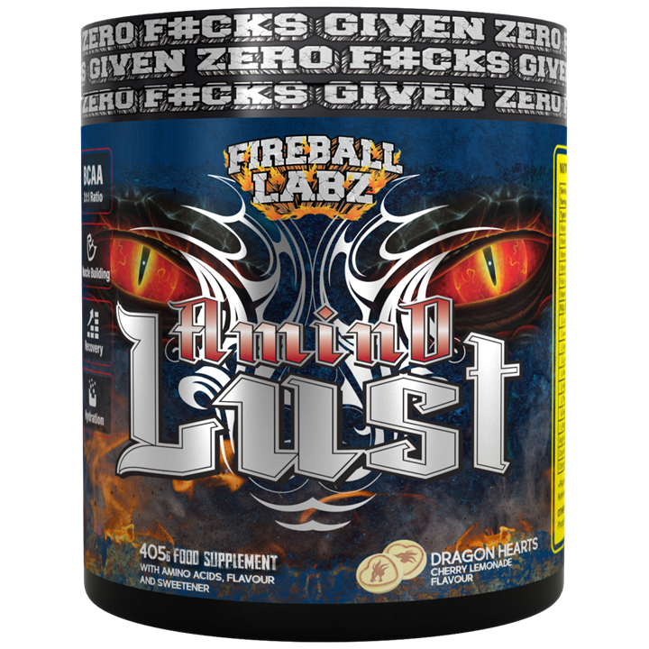 Fuel your body and enhance your workout performance with Fireball Labz AminoLust 405g in Dragon Hearts (Cherry Lemonade). This premium amino acid supplement is designed to deliver the essential nutrients your body needs to recover and grow stronger after intense training sessions.
