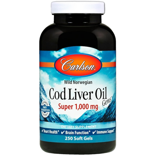 Carlson Labs Wild Norwegian Cod Liver Oil Gems, 1000mg - 250 softgels