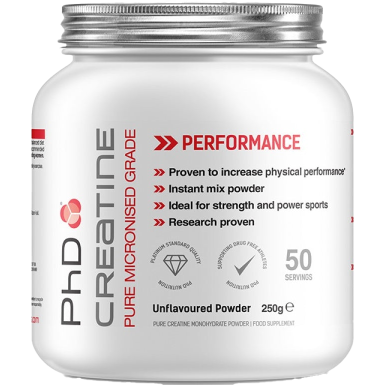 PhDCreatine Pure Micronised Grade - 250gNutrition FactsServing Size: 1 Scoop (3g)Servings Per Container: 83