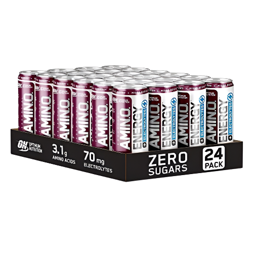 Optimum Nutrition ON Essential Amino Energy + Electrolytes Sugar Free Energy Drink with Electrolytes and Caffeine Mixed Berry 24 Pack 250 ml