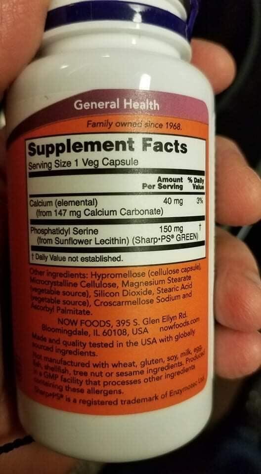 OTHER INGREDIENTS: Cellulose Powder, Cellulose (capsule), Silica and Magnesium Stearate (vegetable source). Contains soy (phosphatidyl serine). Not manufactured with wheat, gluten, milk, egg, fish, shellfish or tree nut ingredients. Produced in a GMP facility that processes other ingredients containing these allergens. -