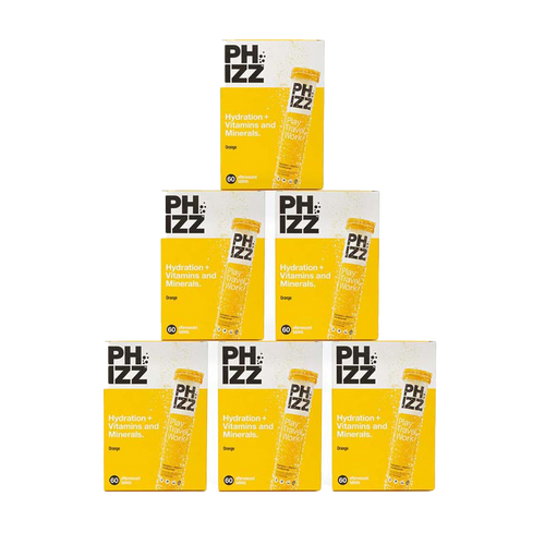 Phizz 2-in-1 Multivitamin & Rehydration Electrolyte Effervescent Multi-pack 6x60 Tabs Orange