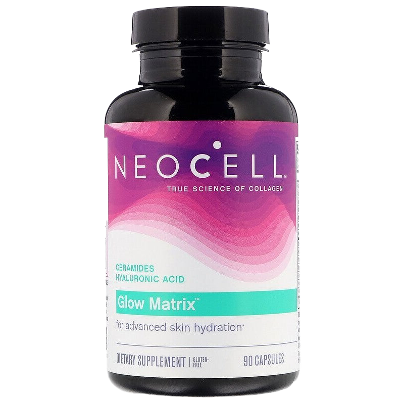 • Unlock the secret to luminous skin with the NeoCell Glow Matrix - 90 caps. This cutting-edge dietary supplement merges the science of Collagen, Ceramides, and Hyaluronic Acid in a powerful blend that elevates skin hydration and beauty from within.