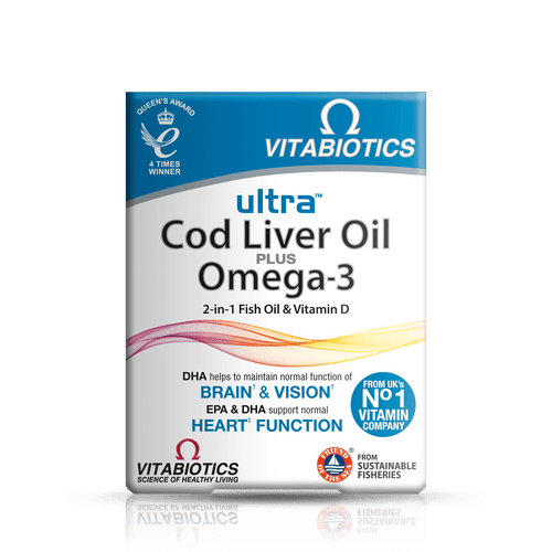 Vitabiotics Ultra Cod Liver Oil Plus Omega 3 2 in 1 Fish Oil & Vitamin D 60 Capsules