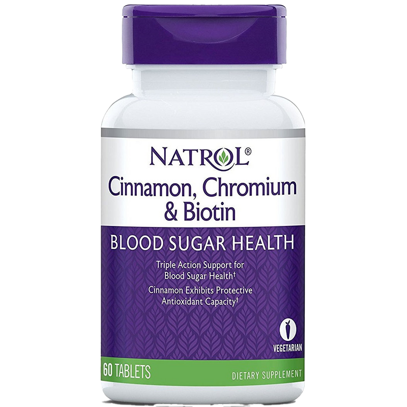 Unlock the potential of natural health with Natrol Cinnamon, Chromium & Biotin in 60 tablets. This synergistic formula combines the dynamic trio of Cinnamon, Chromium, and Biotin to support your bodyâs metabolism of sugar, proteins, and fats. Experience the powerful anti-oxidant properties of Cinnamon, which can help protect your cells from oxidative stress.