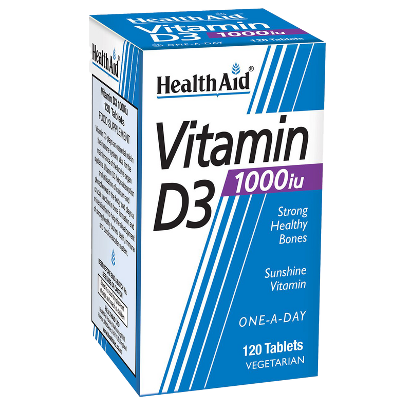 • Healthaid Vitamin D3 tablets are formulated to support your body's natural defenses. Vitamin D is essential for many vital processes, including the maintenance of blood calcium levels and bone health. Unfortunately, due to modern lifestyles and dietary habits, it can be challenging to obtain sufficient Vitamin D from food sources alone. People with darker skin tones and those who use sunscreen frequently may experience deficiencies in Vitamin D, which can lead to a range of health issues, from fatigue and mood swings to weakened immunity.