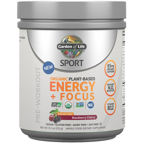 Garden of Life Organic Plant-Based Energy + Focus, Blackberry Cherry (Sugar Free) - 231g