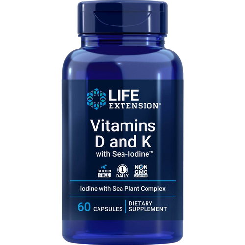 Life Extension Vitamine D und K mit Meeresjod – 60 Kapseln