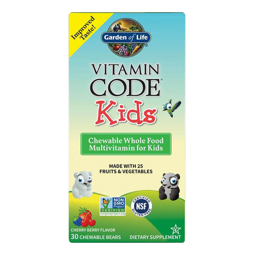 Garden of Life Vitamin Code Kids, kaubares Vollwert-Multivitamin fĂŒr Kinder, Kirschbeere – 30 kaubare BĂ€rchen