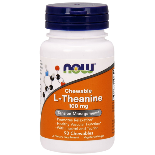 NOW Foods L-Theanin mit Inositol und Taurin, 100 mg – 90 Kautabletten