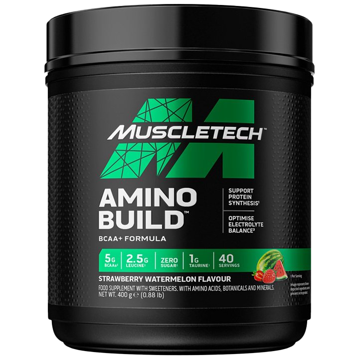 • MuscleTech Amino Build, Strawberry Watermelon - 400g is expertly crafted for athletes seeking to enhance their performance. This scientifically formulated BCAA supplement is packed with 5 g of branched-chain amino acids, crucial for muscle recovery and growth. The enticing Strawberry Watermelon flavor ensures you stay refreshed and hydrated during your workouts.