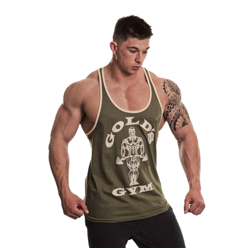 Golds Gym Muscle Joe Contrast Stringer - Army/White
