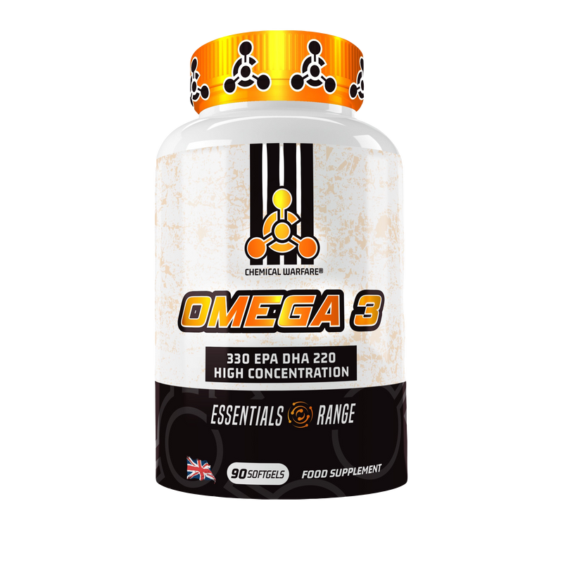 Chemical Warfare Omega 3 90 Softgels is not just any supplement; it's a powerful ally in your journey towards optimal health. Rich in natural Omega-3 fatty acids, this fish oil supplement is designed to provide a myriad of health benefits. Each serving contains a potent 1000mg of Omega-3, consisting of 330mg of EPA and 220mg of DHA, which contribute comprehensively to the maintenance of normal vision and brain function.