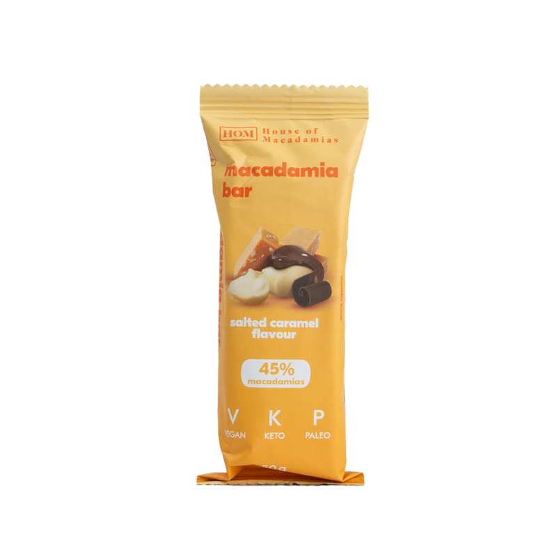 House Of Macadamia Bar 12x50g Salted Caramel is not just a snack; itās a journey toward healthier living! With macadamias being the only nuts abundant in Omega 7, youāll enjoy benefits beyond mere snacking. These incredible nuts can boost collagen production, enhancing the health of your skin, hair, and nails. This bar promotes a healthy metabolism, which can aid in weight management and reduces the risk of heart issues, thanks to their low lectin levels that support digestive health. Completely plant-based, vegan, gluten-free, and natural, our bars are also paleo and keto diet friendly. Experience taste and health benefits all in one; each bar contains 45% macadamias, making them the ideal snack for anyone on the go. Plus, our ingredients are sourced directly from farmers in South Africa, guaranteeing superior quality and authentic taste.
