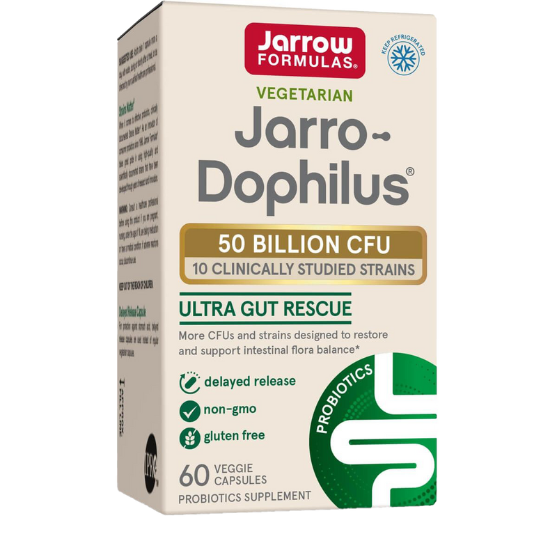 Introducing Jarrow Formulas Ultra Jarro-Dophilus, your go-to solution for gut health! This premium probiotic supplement contains a potent blend of 50 billion CFUs from 10 different probiotic strains meticulously formulated to support and enhance your digestive welfare.