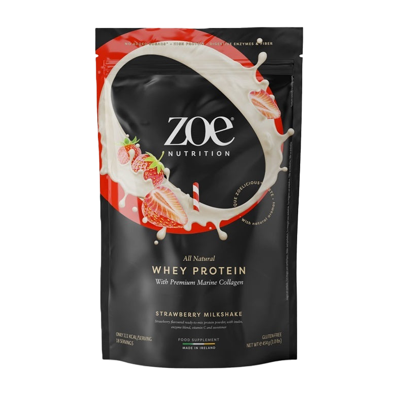 ZOE Nutrition Whey Protein with Premium Marine Collagen, Strawberry Milkshake - 454g